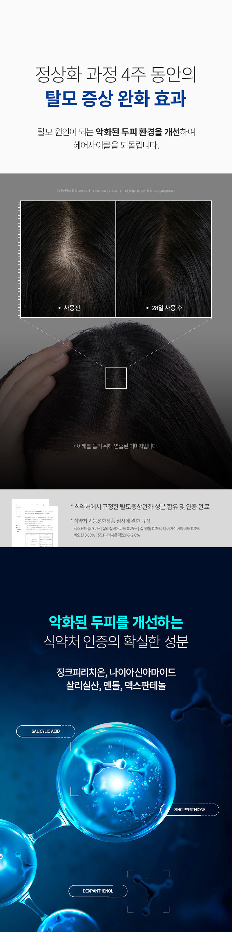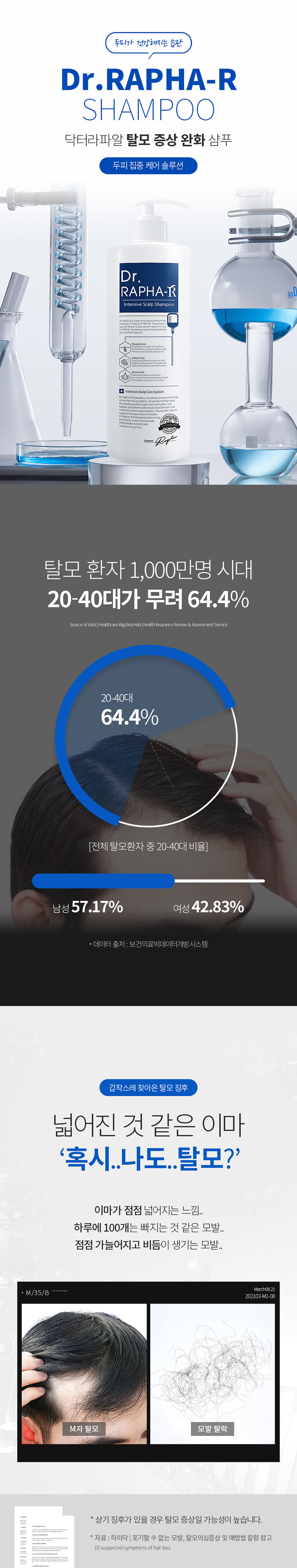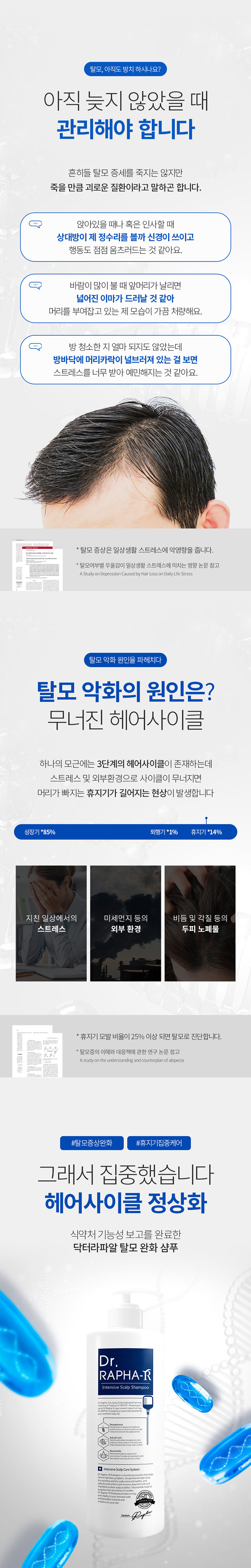 [닥터라파알] 블루 탈모 샴푸 1L + 단백질 트리트먼트 1L 지성 두피 손상모 90.8% 개선