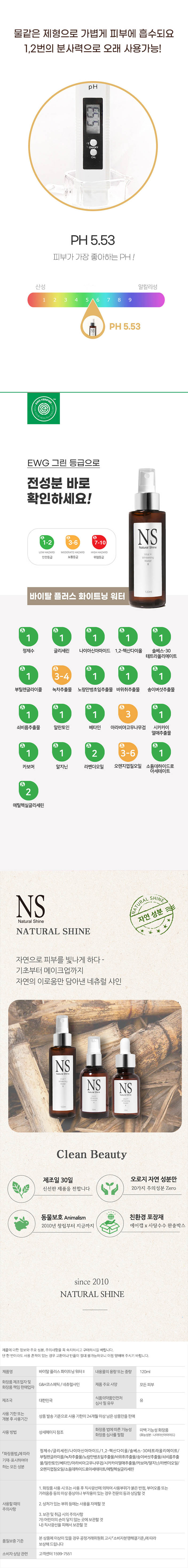 [네츄럴샤인] 바이탈 플러스 화이트닝 워터 120ml